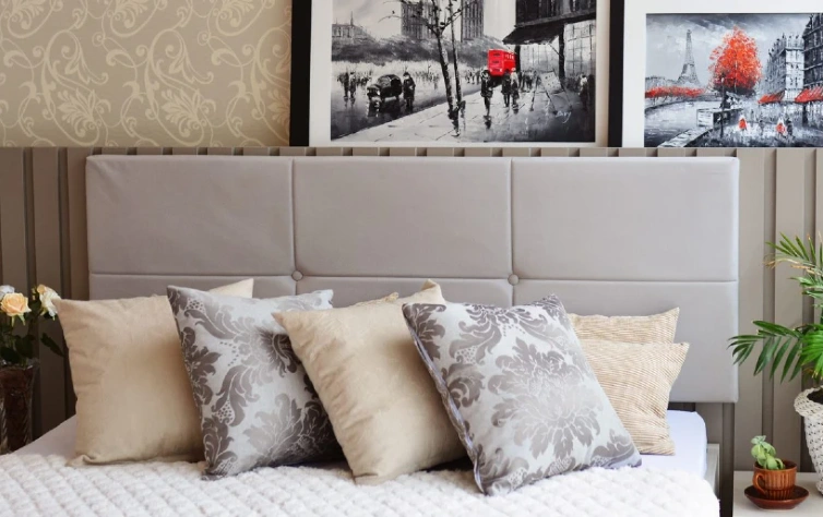 Para deixar o ambiente acolhedor, só uma cama bem confortável não basta – é preciso pensar no todo, no macro do projeto. Por isso, além da iluminação, como já falamos acima, você também pode apostar em uma paleta de cores que seja visualmente aconchegante e em objetos de decoração, como almofadas. Outra dica, é usar cabeceiras de cama estofadas. Neste exemplo de dormitório que trouxemos, reunimos todas essas dicas. Não ficou demais?